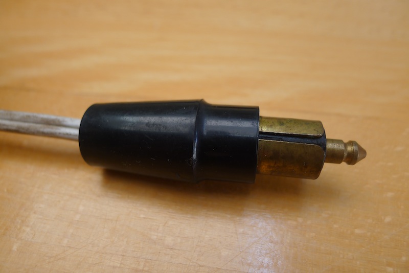 Ik heb dergelijke stekkers thuis liggen, maar ik vind het een beetje onduidelijk hoe de kabel die op de pin komt vastgezet wordt origineel.